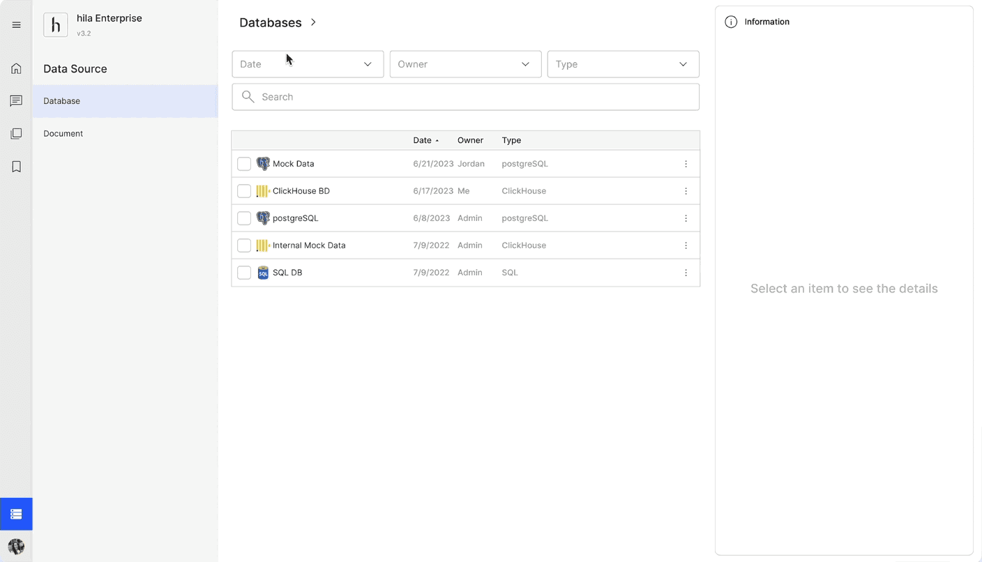 Users canswitch between structured and unstructured data from the left panel.
