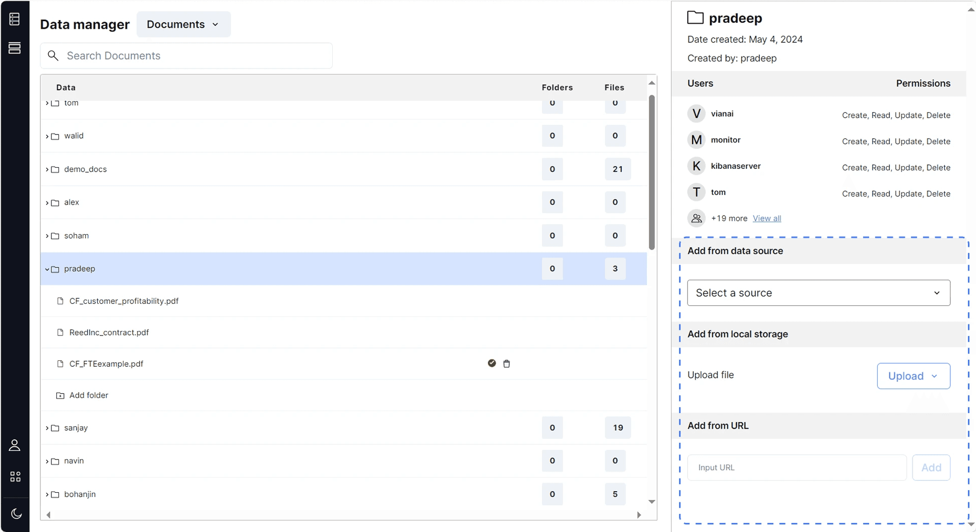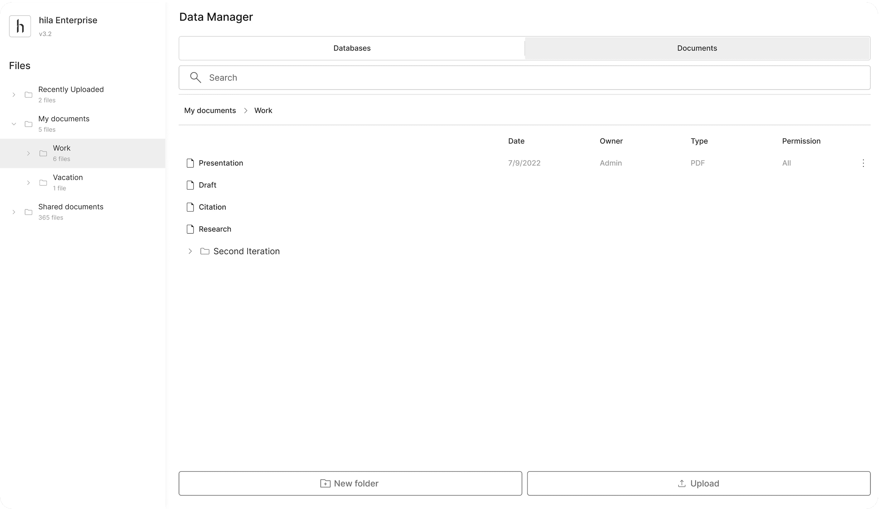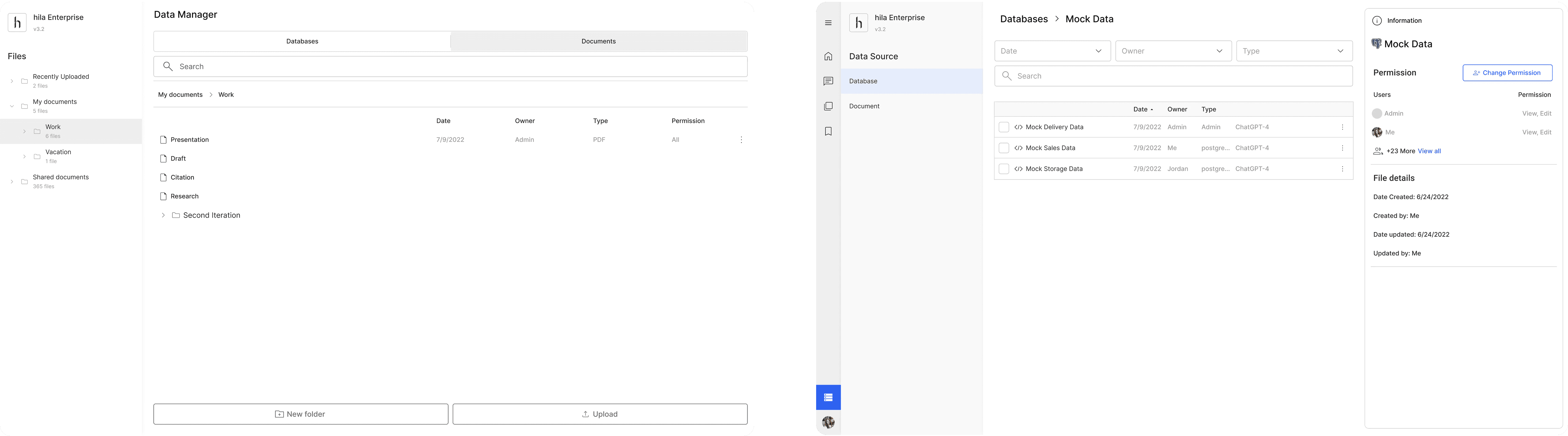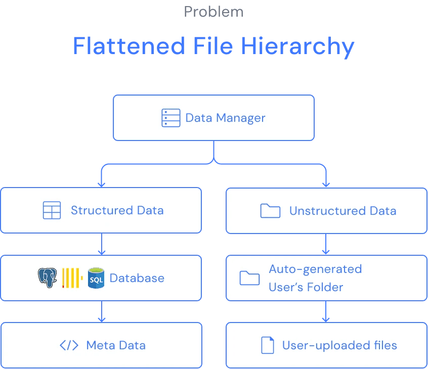 Since unstructured data now have a more complex hierarchy, a folder navigation system is added to the left panel, allowing users to see the folder structure and open folders.