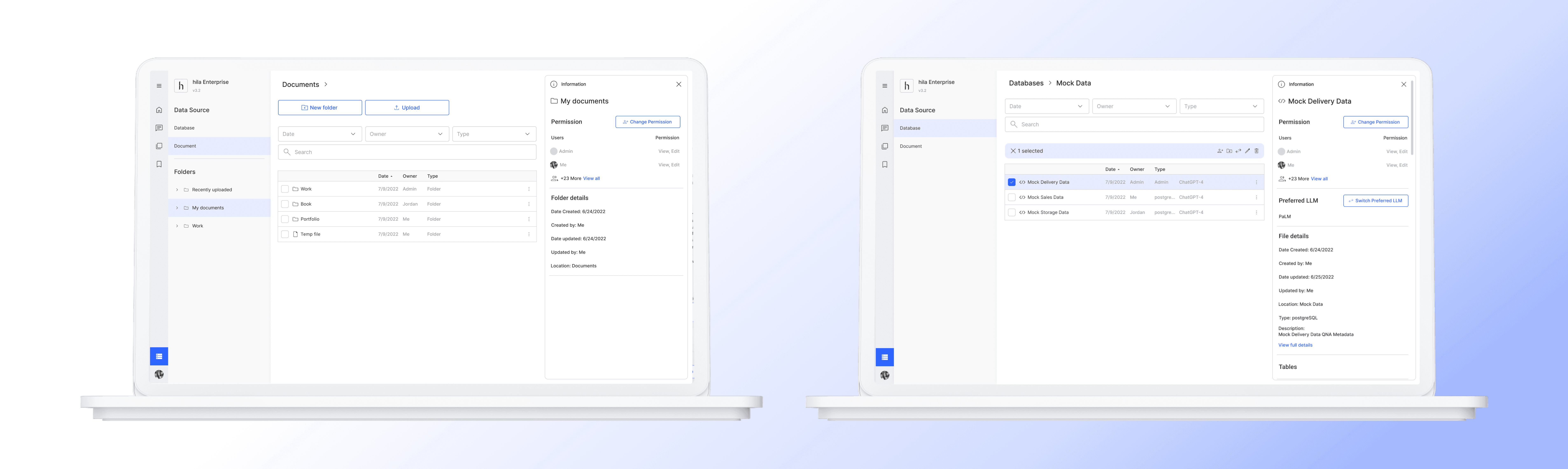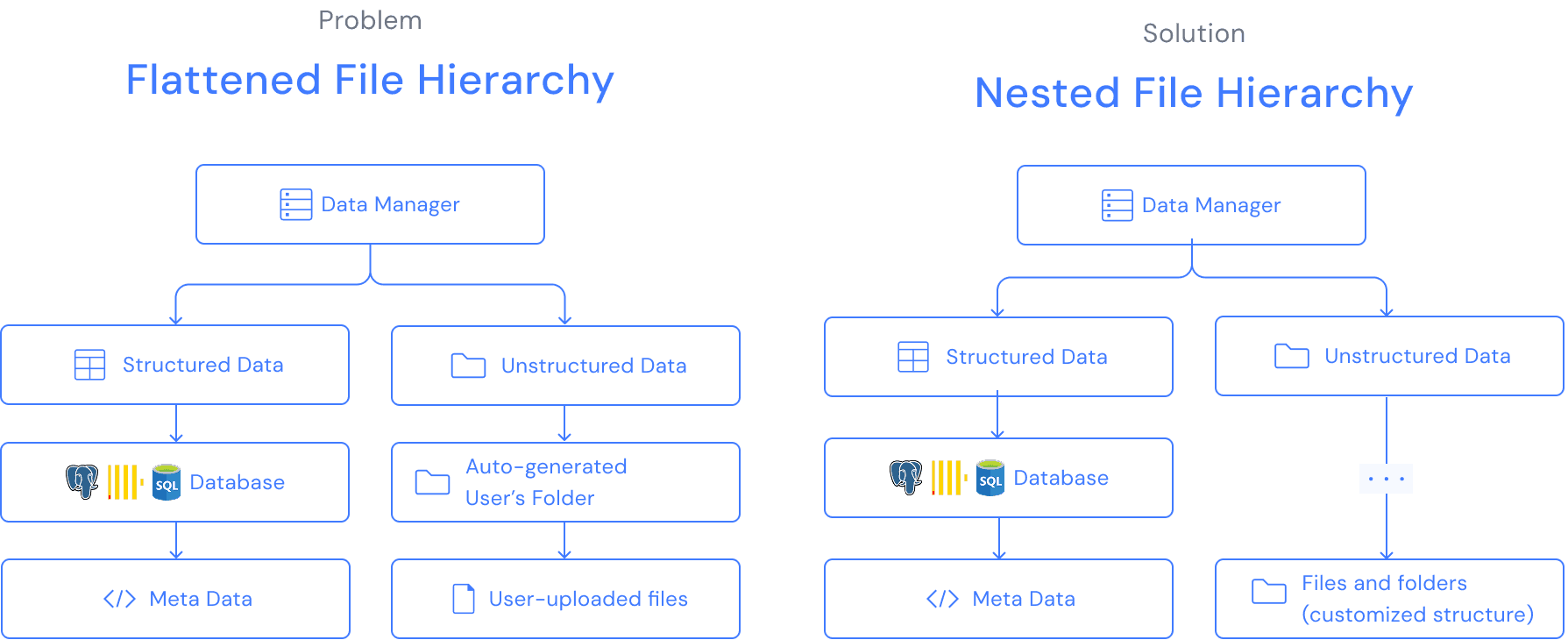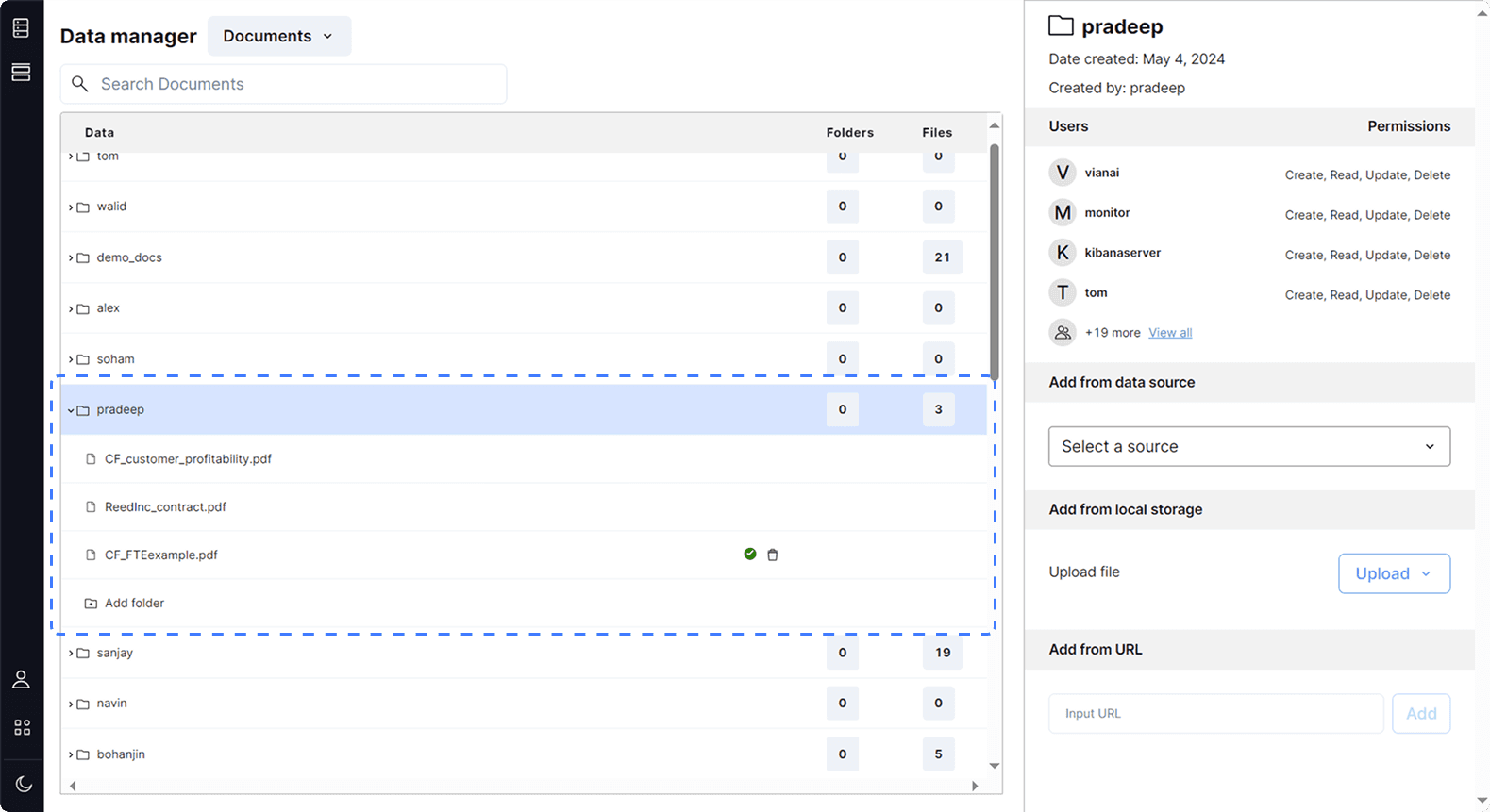 Since unstructured data now have a more complex hierarchy, a folder navigation system is added to the left panel, allowing users to see the folder structure and open folders.