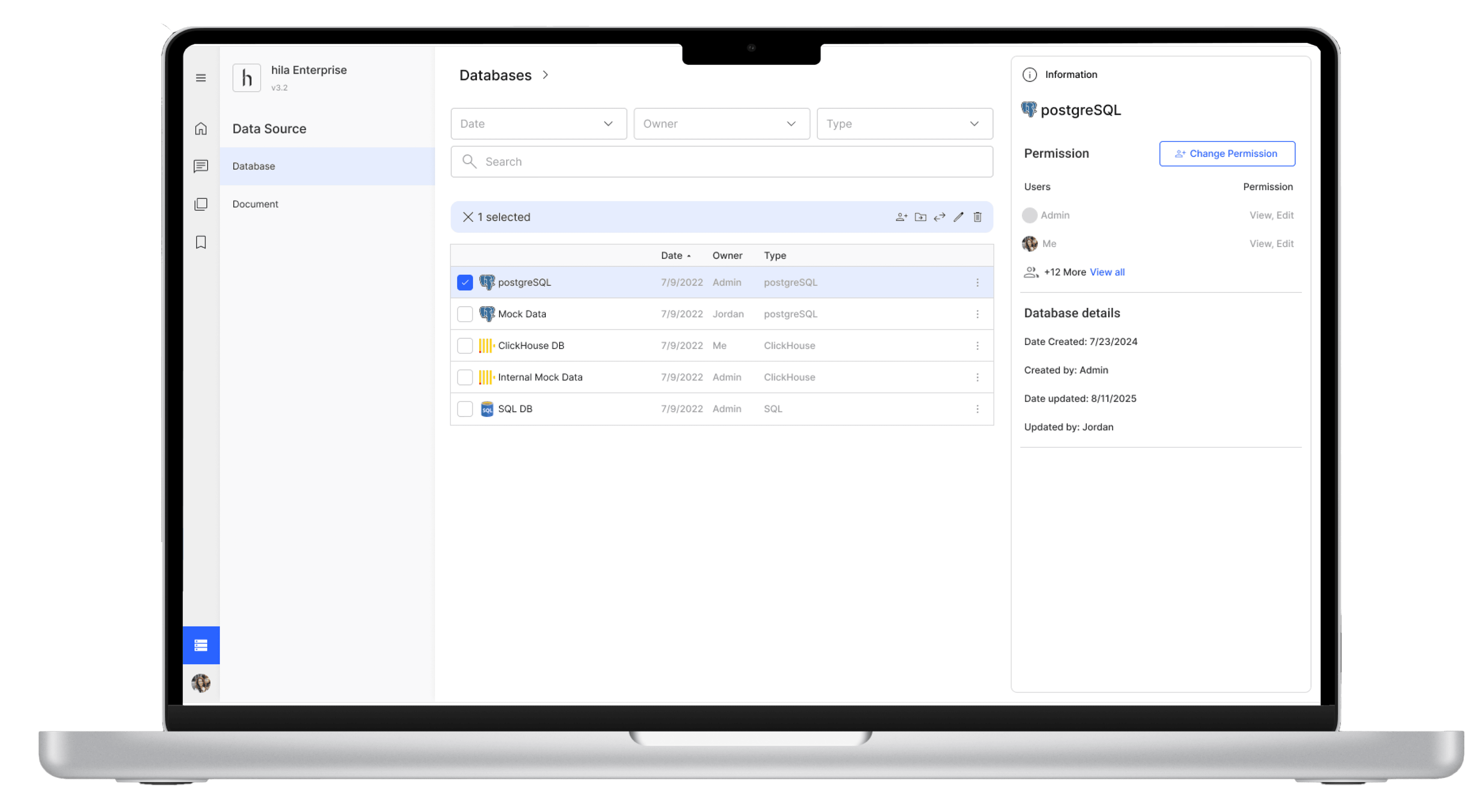 Hover reveals quick-access icons for Change Permission and Delete, the two most common used features.